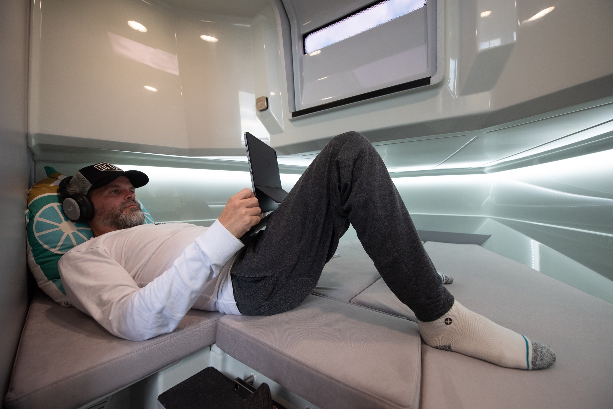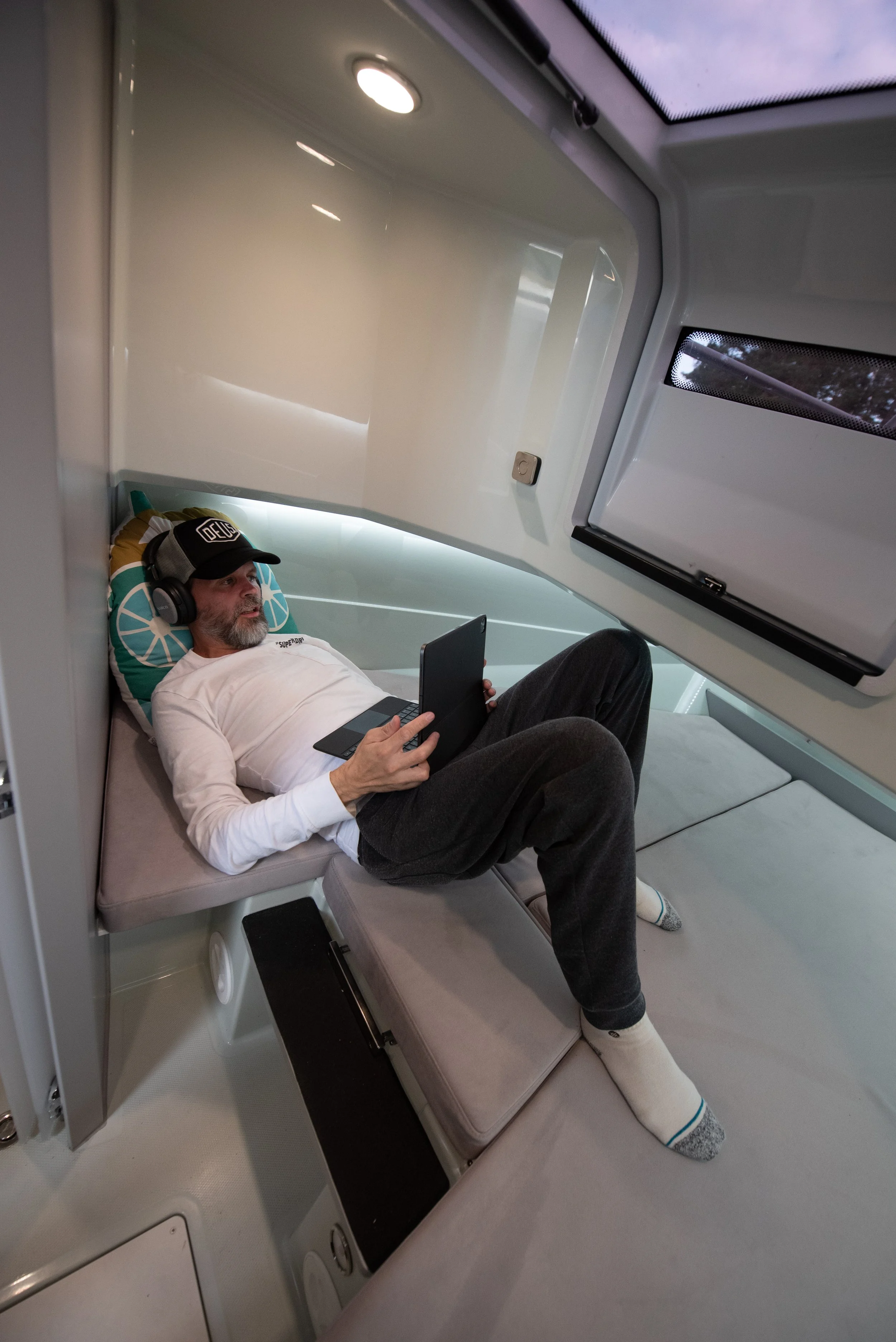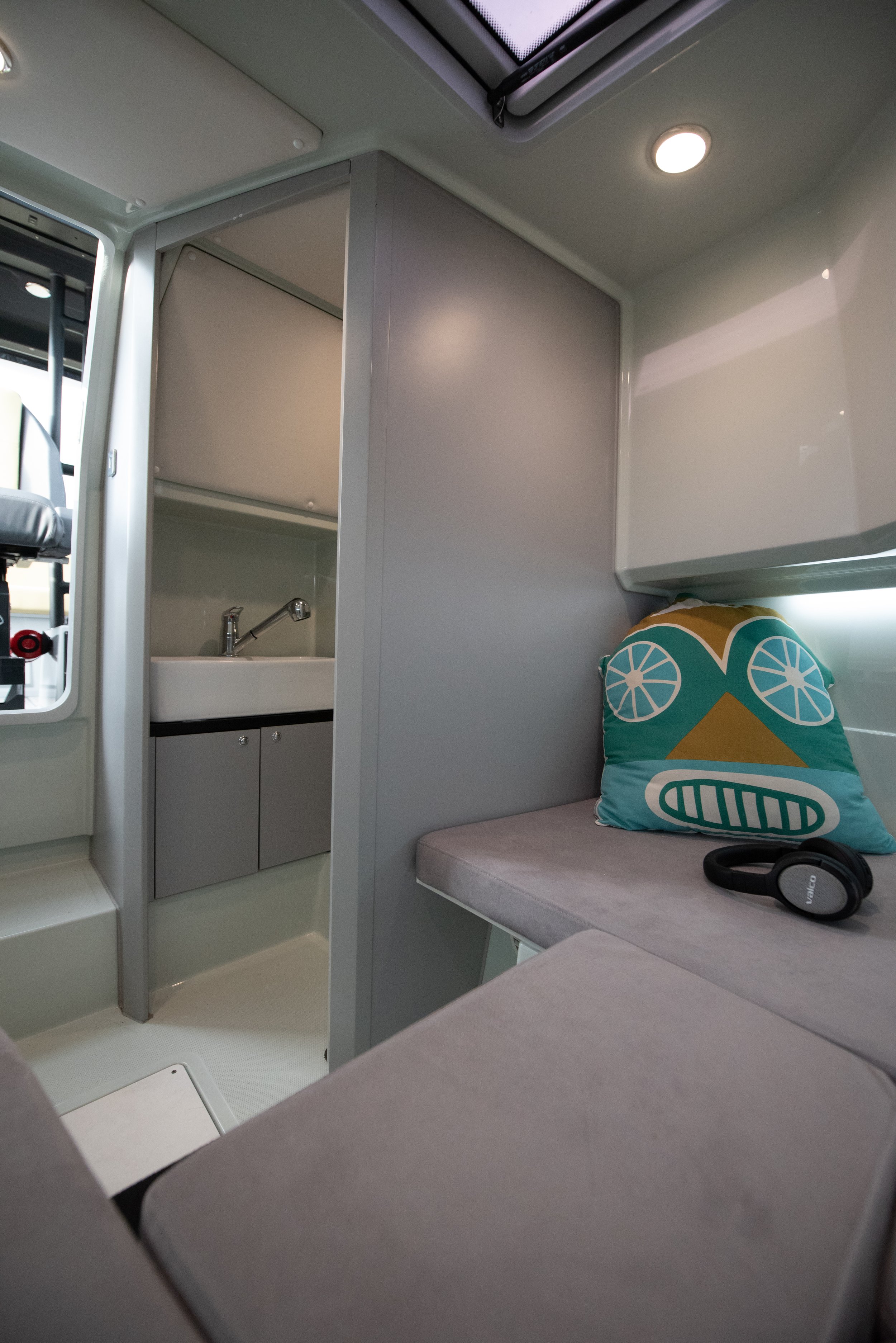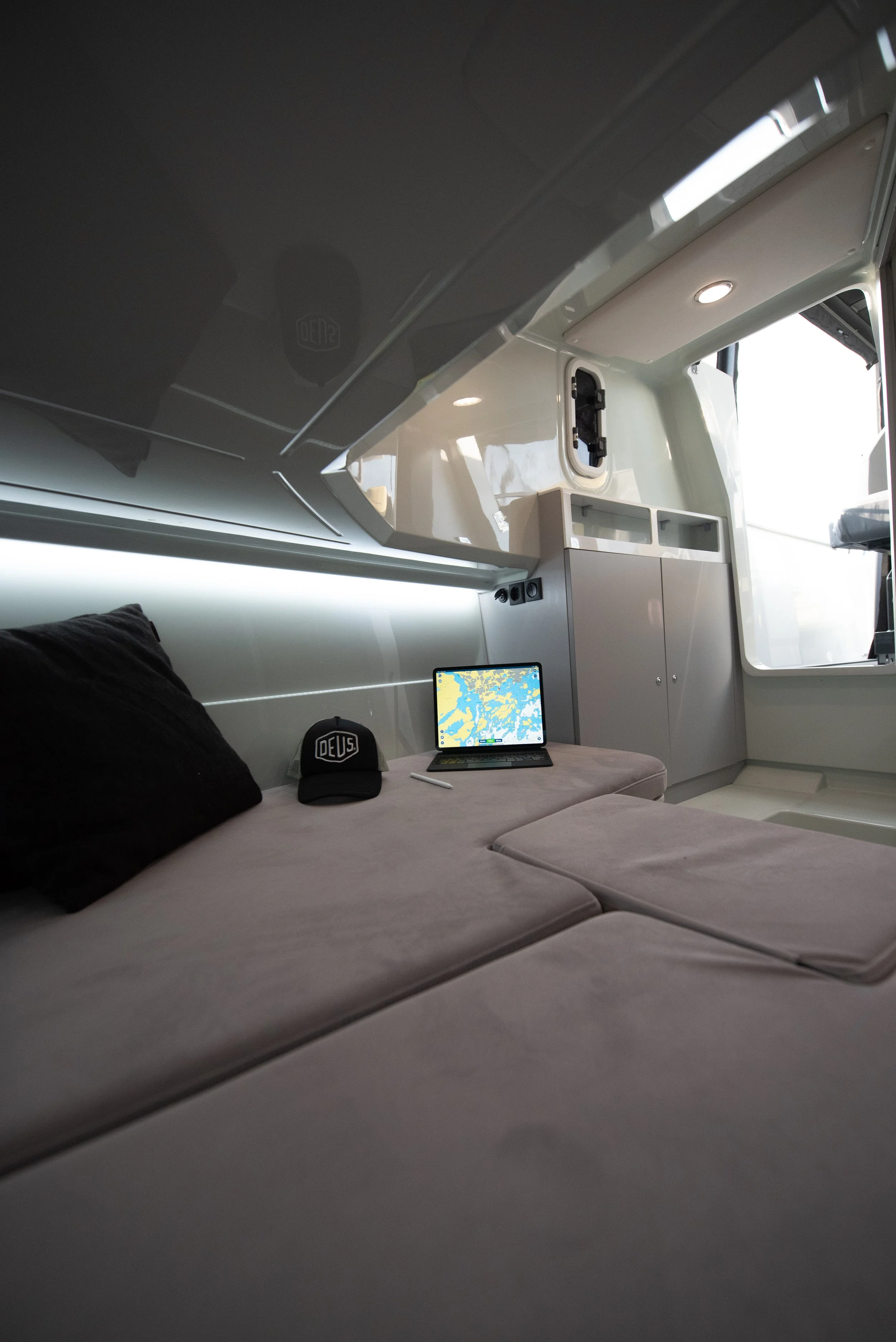 Sengeforlengelse i kabin (ekstra oppbevaringsplass bak ryggstøtter)