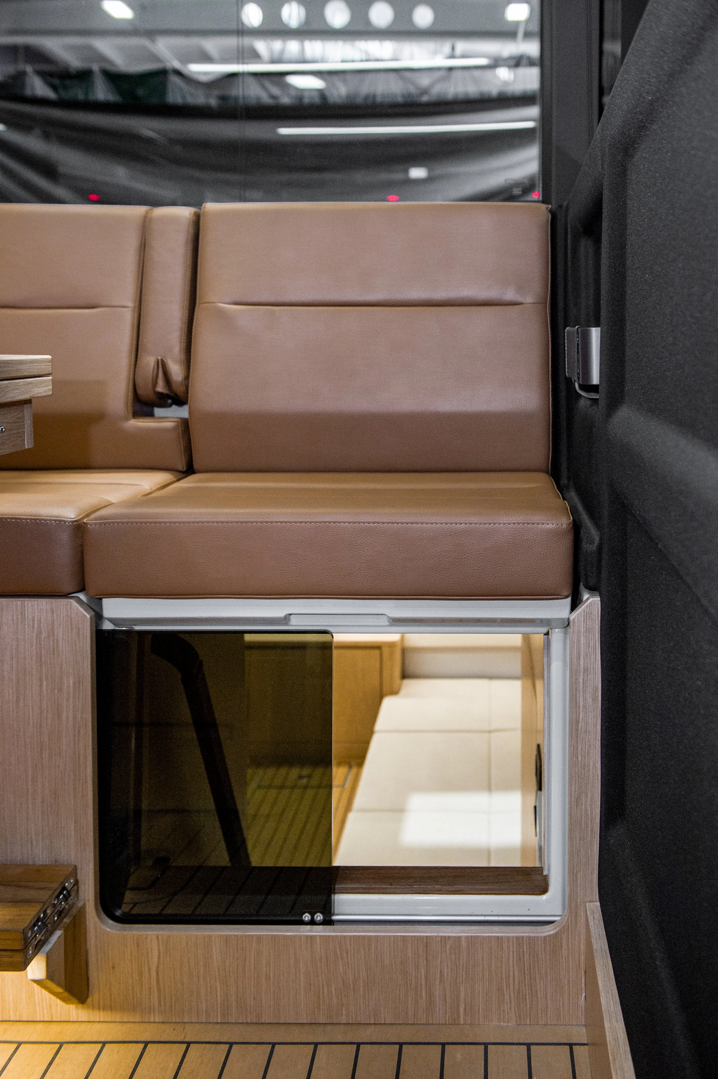 Pantrymodul inkl. kokeplate, vask og kjøleskap i kabin (med 2 standard seter – uten fjæring – elektrisk justerbare)