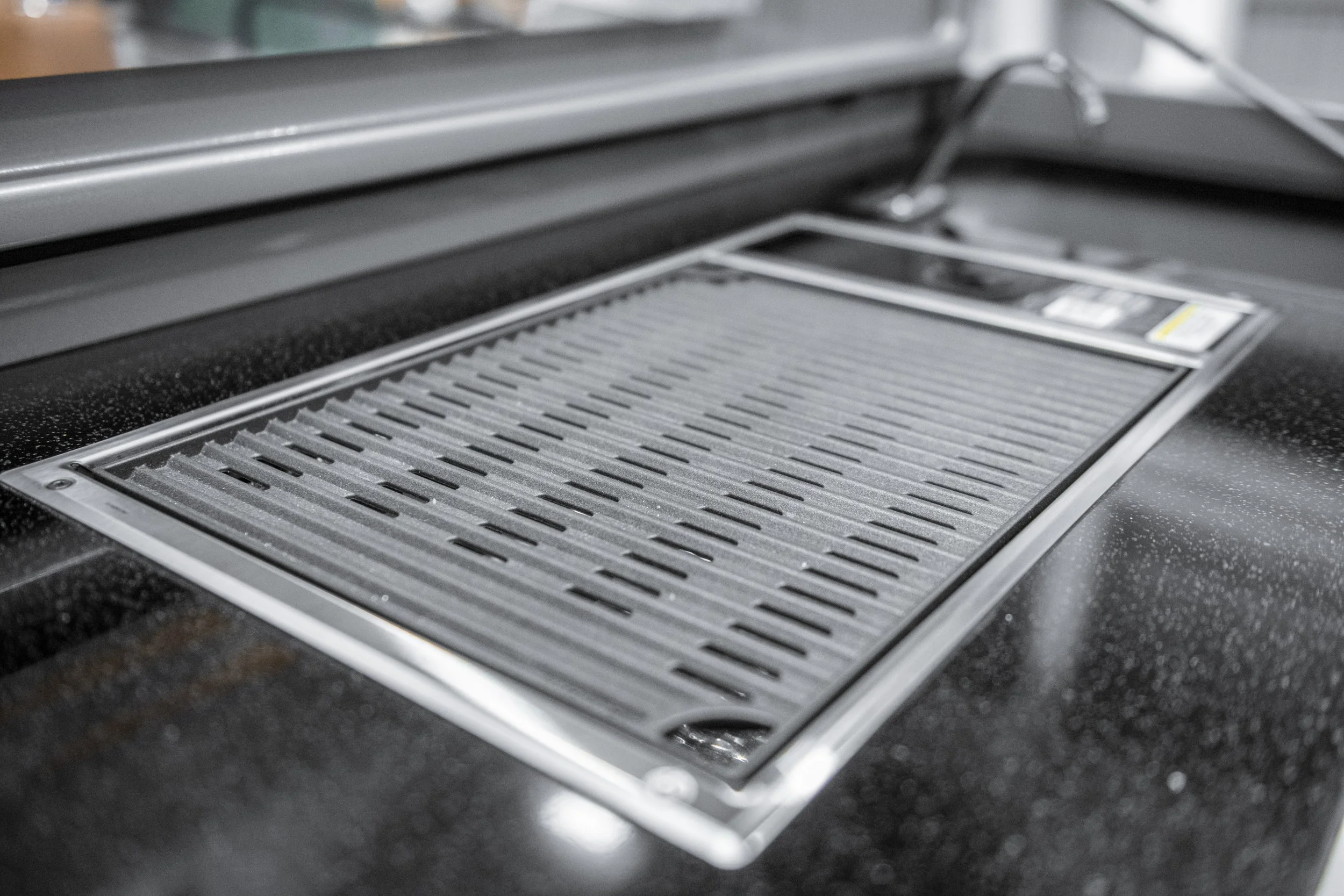 Pantrymodul inkl. kokeplate, vask og kjøleskap i kabin (med 2 Besenzoni-seter – uten fjæring – elektrisk justerbare)